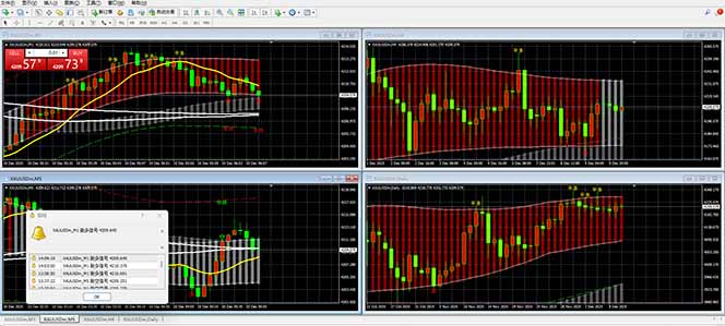 基于经典的维加斯通道理论,通过双管道线精准识别趋势方向,在黄金当前4040到4300美元的震荡区间里,短线机会频频出现。